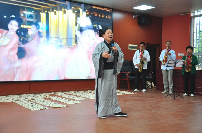由弋陽(yáng)縣楹聯(lián)詩(shī)詞學(xué)余賓先生為現(xiàn)場(chǎng)帶來(lái)李白《清平調(diào)二首》的吟唱表演,在金享良等樂(lè)手的管樂(lè)伴奏下,古韻悠悠、婉轉(zhuǎn)悠揚(yáng),將在場(chǎng)眾人帶入盛唐的浪漫詩(shī)意情境中,贏得滿(mǎn)堂喝彩。