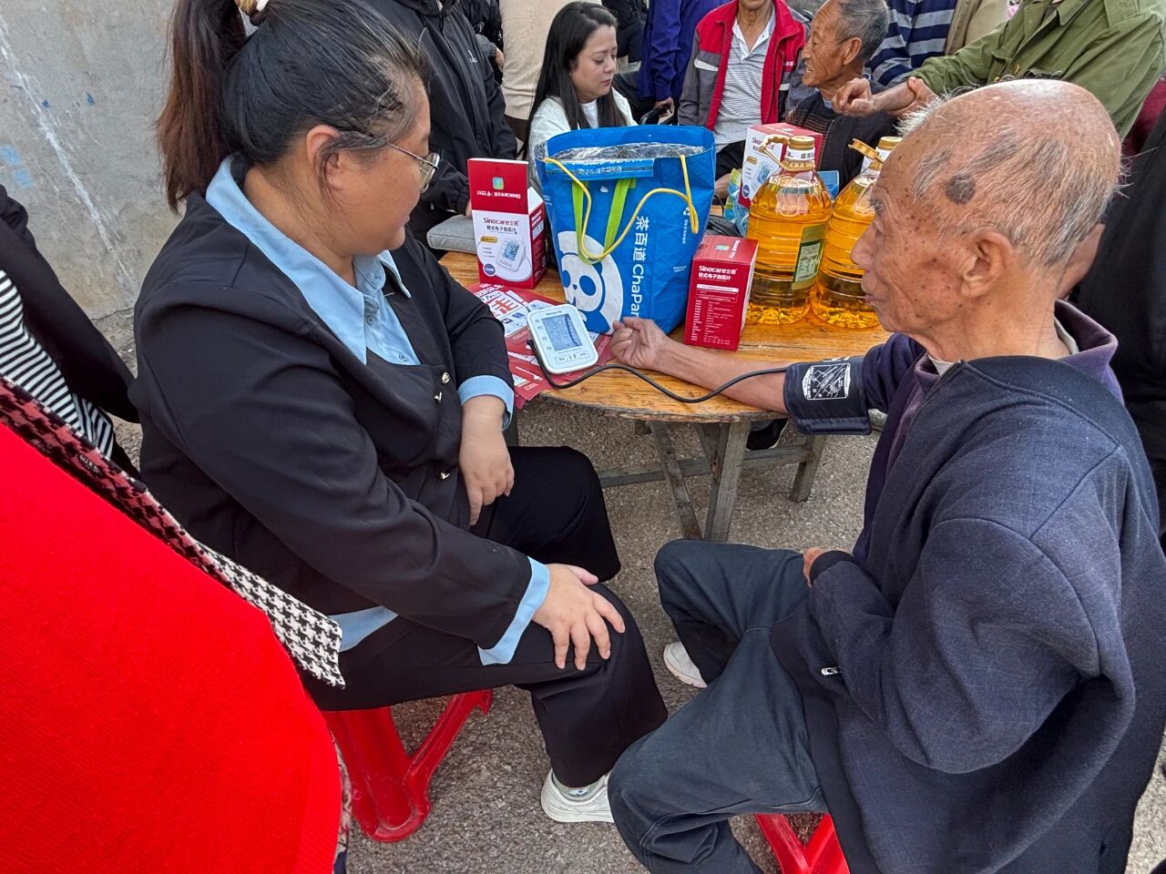 與此同時(shí),黃墩村的愛(ài)老敬老活動(dòng)也同樣精彩紛呈,關(guān)愛(ài)備至。活動(dòng)從清晨便已開(kāi)始,傳統(tǒng)的打糍粑活動(dòng)讓現(xiàn)場(chǎng)米香四溢,老人們重溫了熟悉的傳統(tǒng)技藝,也找回了往日的記憶。上午,村里組織了免費(fèi)的血壓測(cè)量和健康咨詢活動(dòng),志愿者們耐心地為每一位老人檢查身體,解答健康疑問(wèn),傳遞科學(xué)的養(yǎng)生知識(shí),體現(xiàn)了對(duì)老人們身體健康的高度關(guān)注。到了中午,豐盛的重陽(yáng)宴準(zhǔn)時(shí)開(kāi)席,老人們圍坐桌旁,品嘗著美味佳肴,相互舉杯祝福,暢談晚年生活。一整天的活動(dòng)安排緊湊而充實(shí),老人們的臉上始終洋溢著燦爛而幸福的笑容,沉浸在節(jié)日的喜悅與溫暖之中。