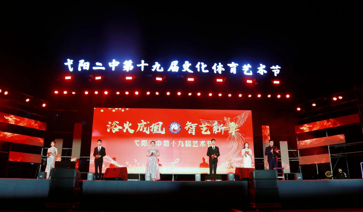 11月11日晚,弋陽縣第二中學(xué)第十九屆文化體育藝術(shù)節(jié)在全校師生的熱切期盼中開幕。藝術(shù)節(jié)以“浴火成凰,智藝新章”為主題,呈現(xiàn)了一場(chǎng)科技與藝術(shù)交織、傳統(tǒng)與現(xiàn)代共鳴的視聽盛宴。