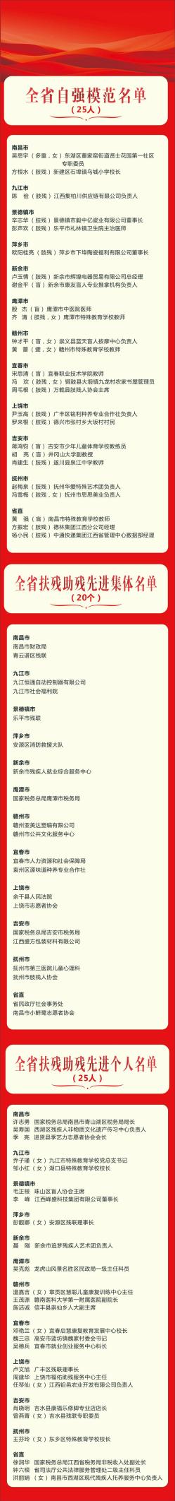 11月20日上午,第七次江西省自強模范暨扶殘助殘先進表彰大會在南昌召開。會上表彰了25名“全省自強模范”、20個“全省扶殘助殘先進集體”、25名“全省扶殘助殘先進個人”。(張少勇)