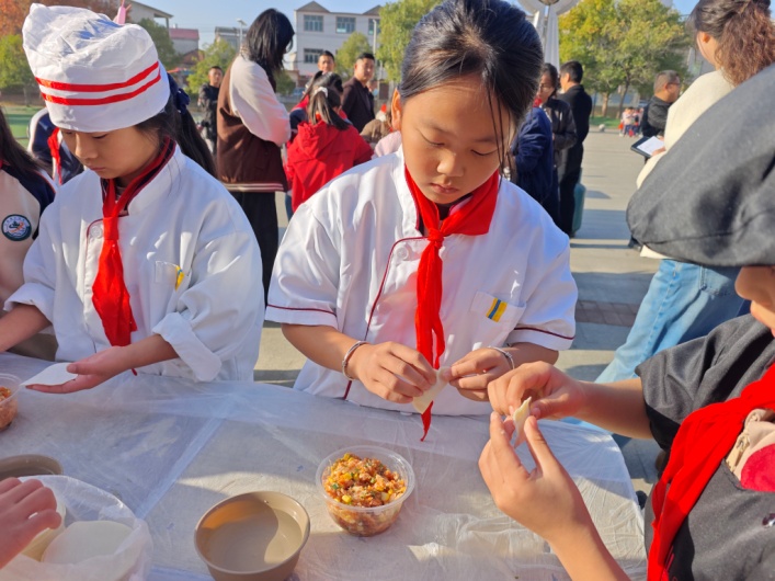 競(jìng)賽分規(guī)定項(xiàng)目與自選項(xiàng)目有序推進(jìn),各學(xué)段任務(wù)設(shè)計(jì)貼合年齡特點(diǎn)。幼兒園小朋友專注剝雞蛋、穿鞋子,錘煉精細(xì)動(dòng)作;低年級(jí)學(xué)生玩轉(zhuǎn)粘土造型、氣球創(chuàng)意,釋放童真活力;中高年級(jí)學(xué)子則大顯身手,剪紙作品精巧靈動(dòng),包餃子、炒揚(yáng)州炒飯動(dòng)作嫻熟,盡顯生活本領(lǐng)。自選項(xiàng)目中,樹葉貼畫、辣椒炒肉等創(chuàng)意作品層出不窮,展現(xiàn)了學(xué)生豐富的想象力與實(shí)踐創(chuàng)造力。