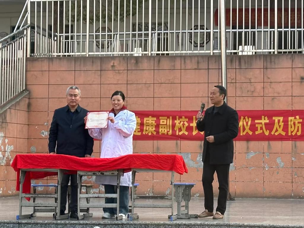 聘任儀式上,學(xué)校相關(guān)負(fù)責(zé)人為來自鎮(zhèn)衛(wèi)生院的專業(yè)醫(yī)療工作者頒發(fā)“健康副校長”聘任證書。這一紙聘書,既是學(xué)校推進(jìn)健康校園建設(shè)的重要舉措,也承載著對(duì)師生健康權(quán)益的鄭重守護(hù),標(biāo)志著該校校園衛(wèi)生健康工作將獲得更專業(yè)的醫(yī)療資源支撐與科學(xué)指導(dǎo),為構(gòu)建家校社協(xié)同的健康防護(hù)體系奠定堅(jiān)實(shí)基礎(chǔ)。