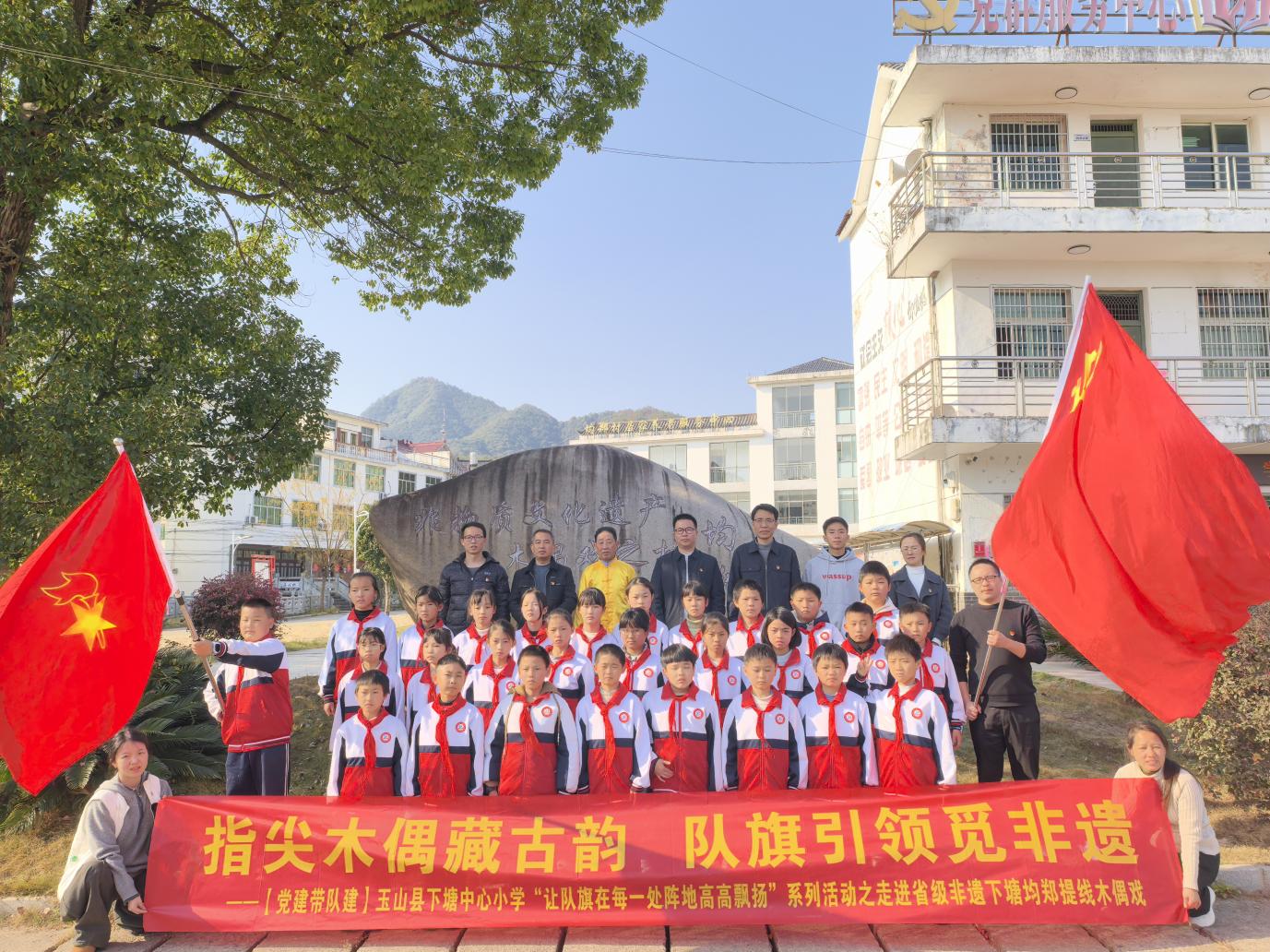 為深化黨建帶隊建成效,厚植青少年文化自信,推動中華優(yōu)秀傳統(tǒng)文化薪火相傳,12月10日,玉山縣下塘中心小學(xué)以“讓隊旗在每一處陣地高高飄揚(yáng)”特色項目為依托,組織少先隊員走進(jìn)省級非物質(zhì)文化遺產(chǎn)下塘均鄭提線木偶戲傳承地,開展沉浸式文化研學(xué)活動。學(xué)校黨員教師全程參與,與隊員們共同探尋非遺技藝的魅力。