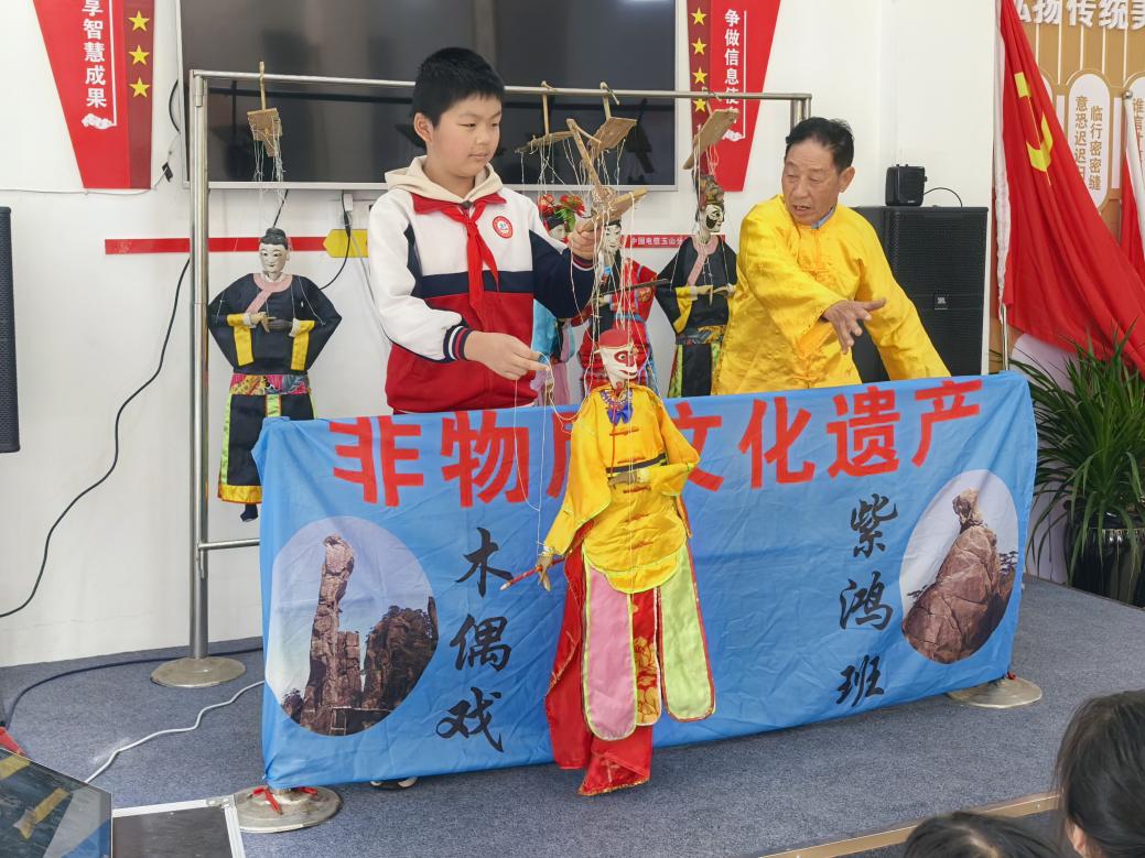 活動伊始,清脆鑼鼓聲中,省級非遺傳承人攜數(shù)十年相伴的木偶登臺獻(xiàn)藝。方寸舞臺上,三十余根絲線在傳承人指尖靈動翻飛,孫悟空騰云駕霧、穆桂英英姿颯爽,傳統(tǒng)戲曲角色唱念做打形神兼?zhèn)?,印證了 “玉山窟儡天下絕” 的古老贊譽(yù),讓隊員們直觀感受非遺文化的深厚底蘊(yùn)。