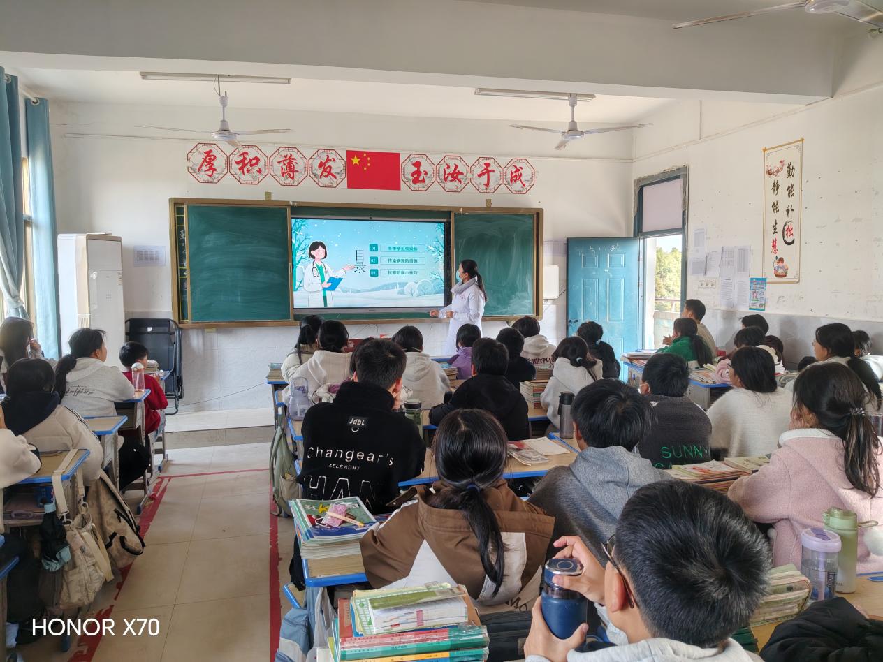 為進(jìn)一步完善校園健康保障體系,提升師生健康防護(hù)能力,近日,余干縣董家店初級中學(xué)特邀梅港鄉(xiāng)衛(wèi)生院護(hù)士來到學(xué)校,舉辦健康副校長聘任儀式暨流感防控知識講座。