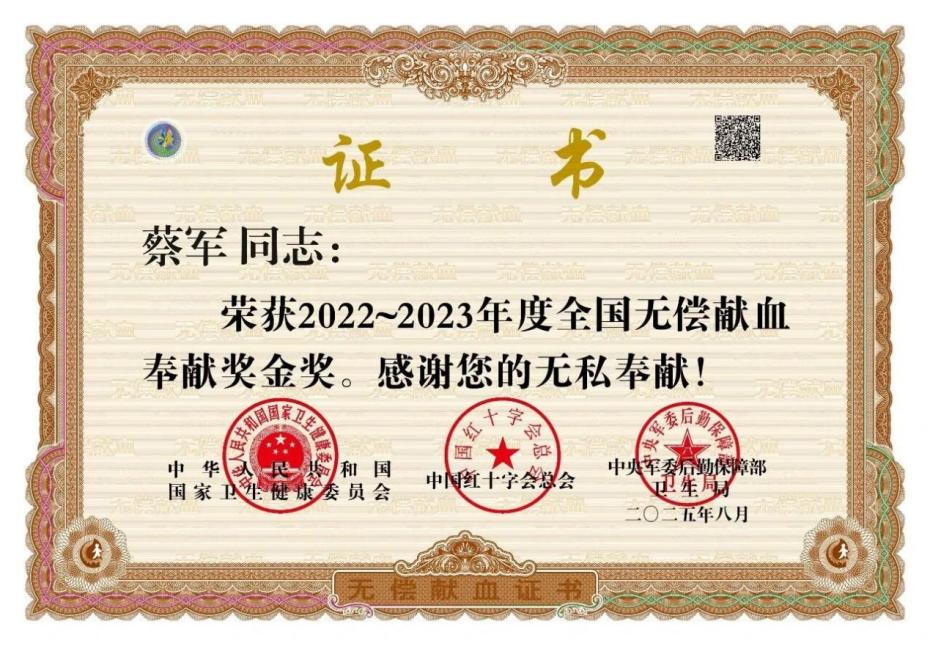 近日,上饒市廣信區(qū)人民法院干警蔡軍、陳劍二人榮獲2022-2023年度全國(guó)無(wú)償獻(xiàn)血奉獻(xiàn)獎(jiǎng)金獎(jiǎng)。該獎(jiǎng)項(xiàng)由國(guó)家衛(wèi)生健康委員會(huì)、中國(guó)紅十字總會(huì)和中央軍委后勤保障部衛(wèi)生局聯(lián)合頒發(fā)。
