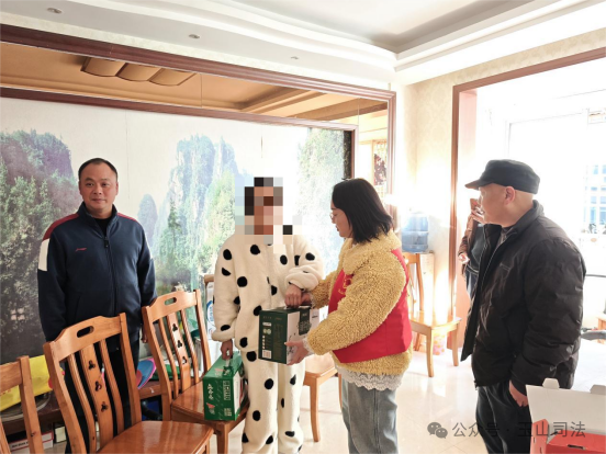 工作組人員共同前往一名處于哺乳期的暫予監(jiān)外執(zhí)行社矯對象家中進行走訪。該對象目前面臨一定的生活與心理壓力,走訪組不僅送上了關懷慰問,縣檢察院、司法局工作人員還現(xiàn)場解答了相關監(jiān)管政策,心理咨詢師提供了專業(yè)疏導,志愿者協(xié)會精準記錄了其家庭在育兒、生活方面的困難以對接后續(xù)幫扶。