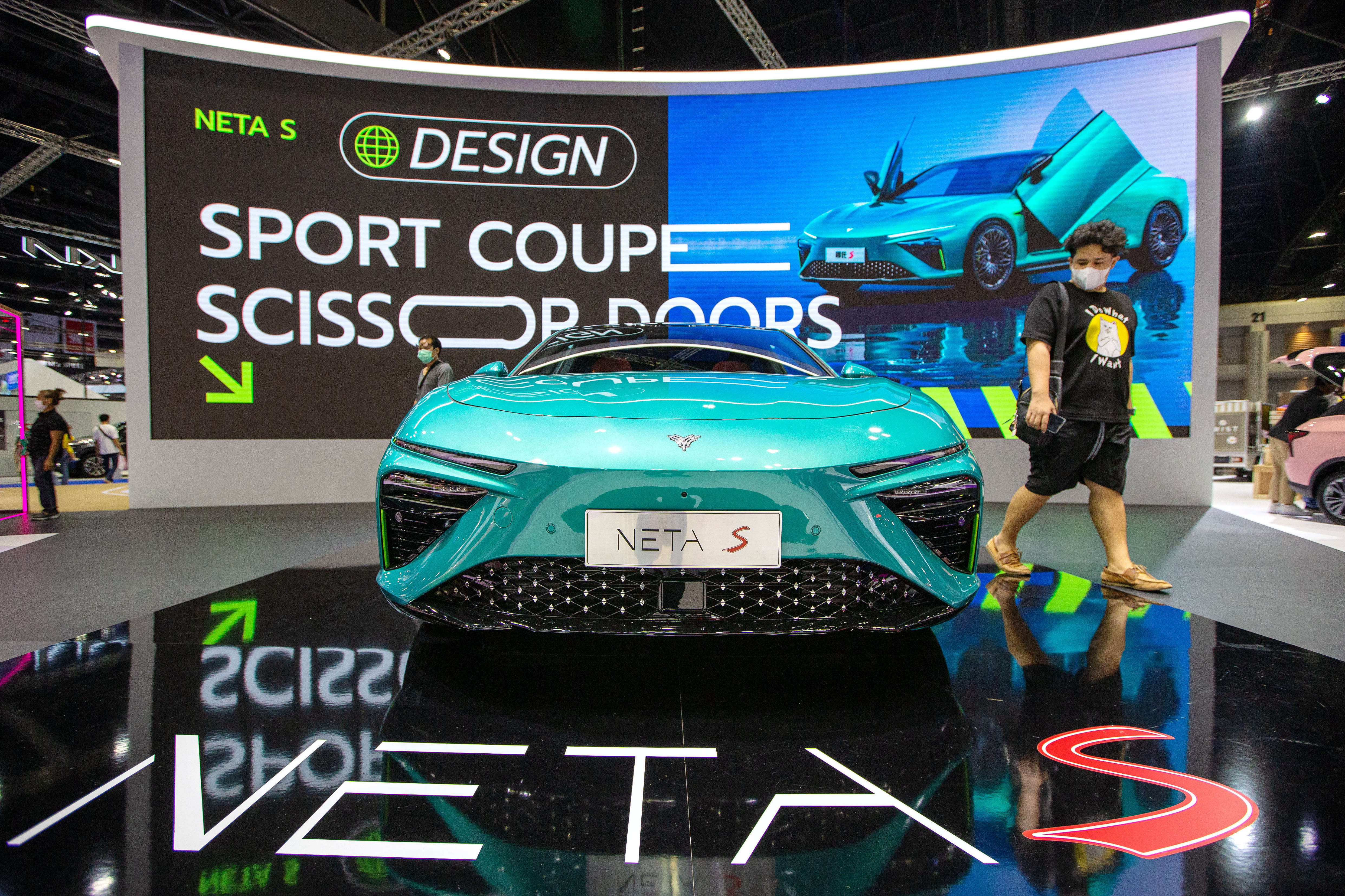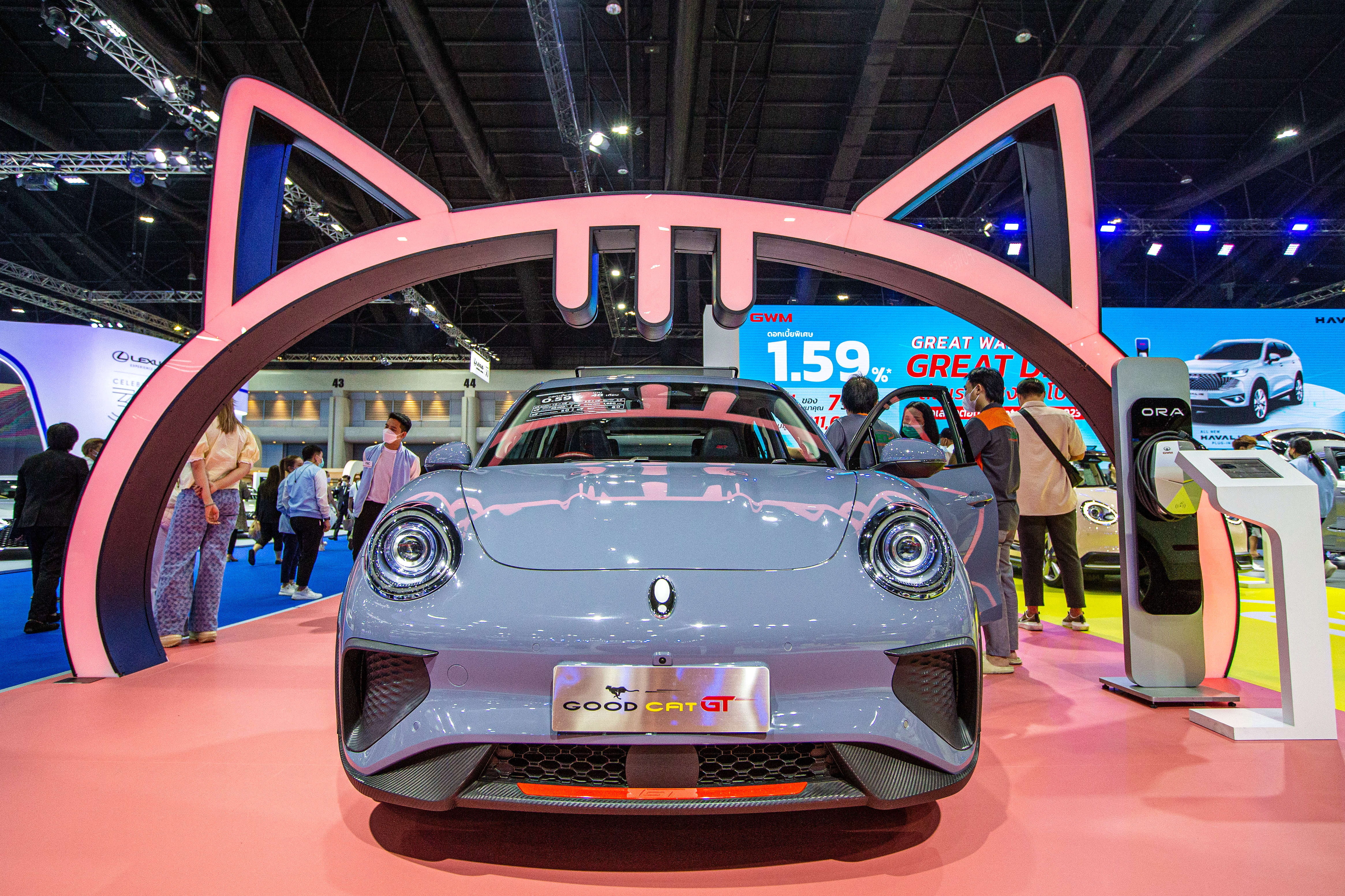 3月22日,觀眾在泰國曼谷國際車展上參觀歐拉好貓GT汽車。