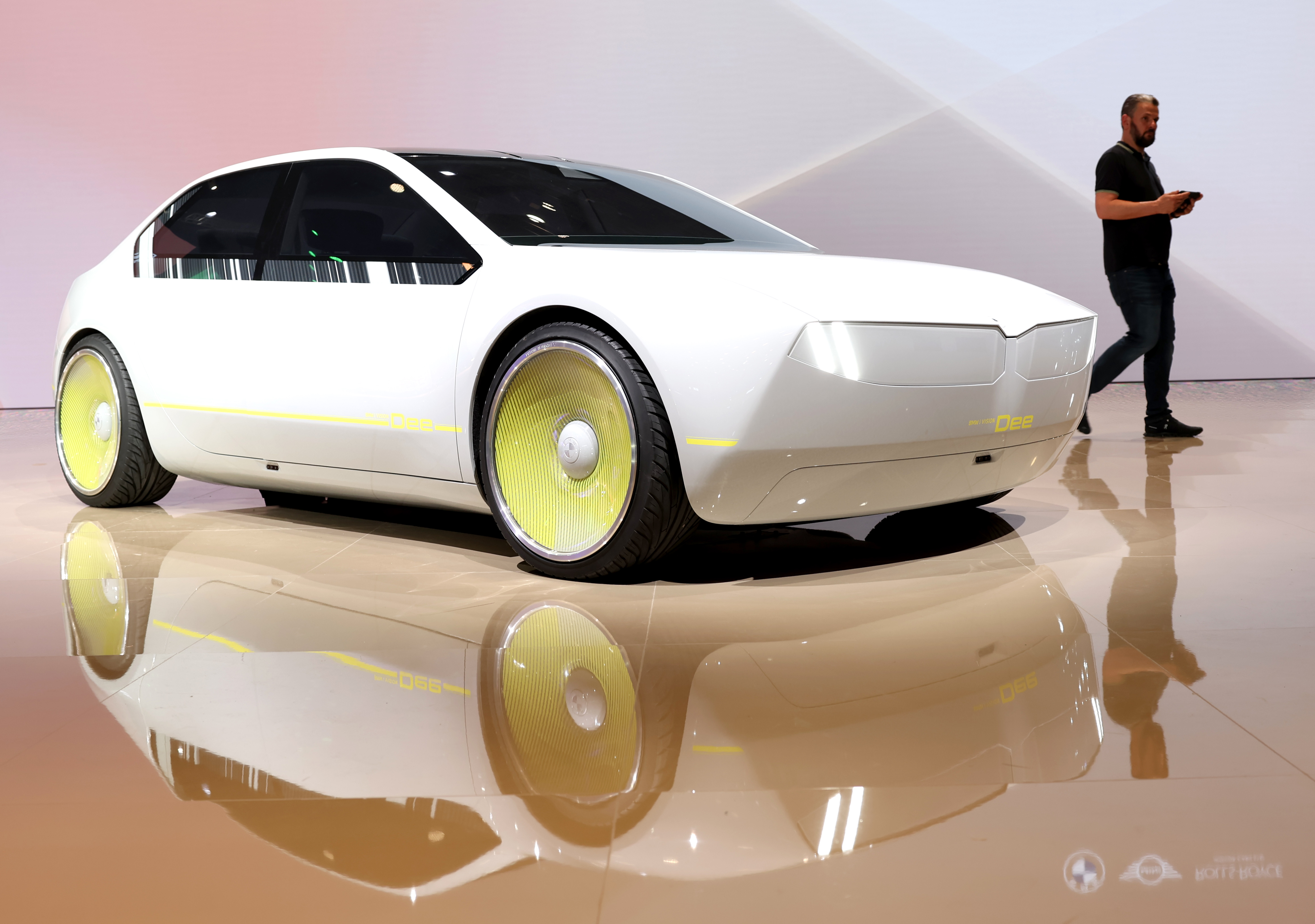 4月18日,參觀者在北京汽車品牌展臺(tái)參觀。