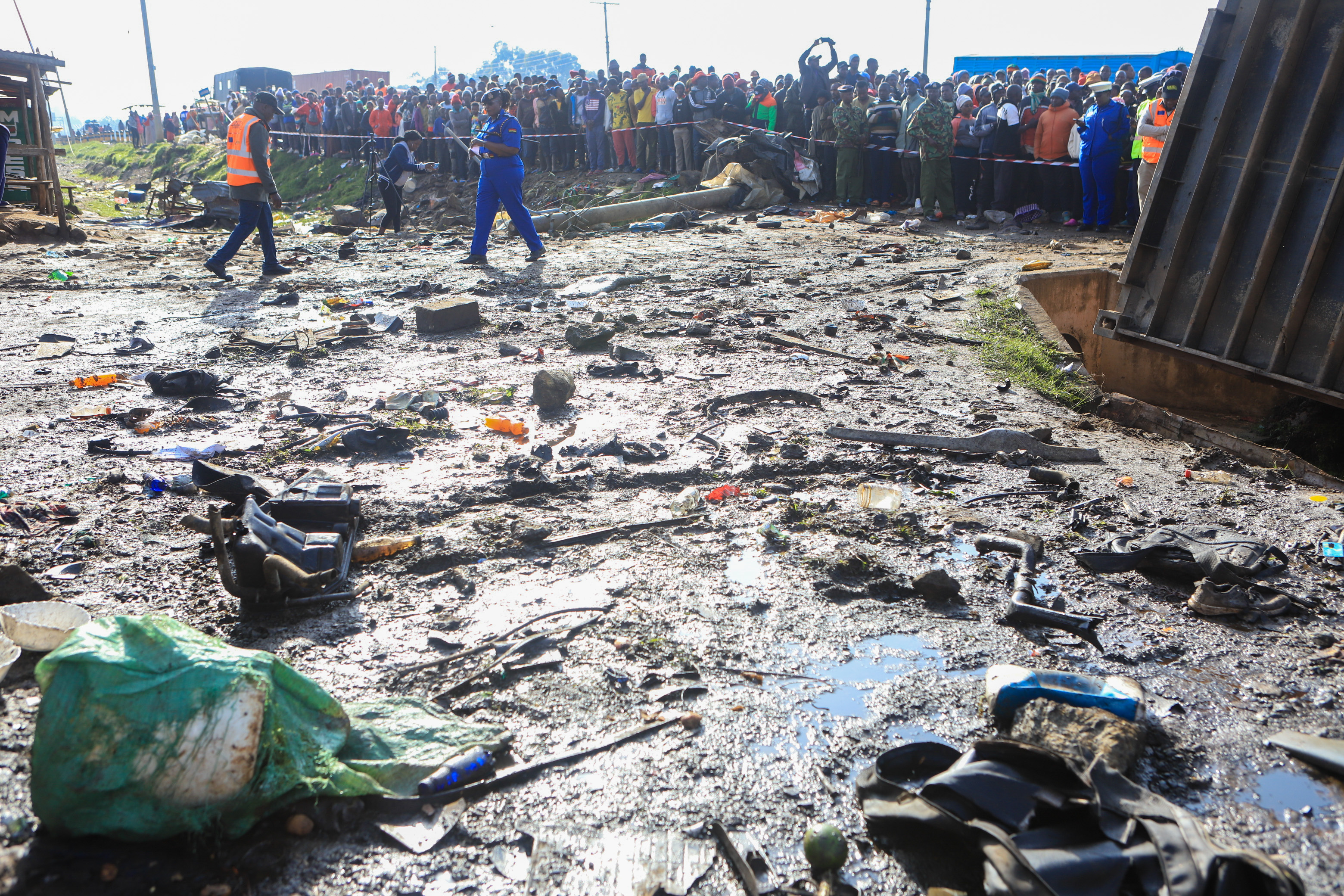 7月1日,人們聚集在肯尼亞西北部凱里喬郡隆迪亞尼鎮(zhèn)附近的車禍現(xiàn)場。