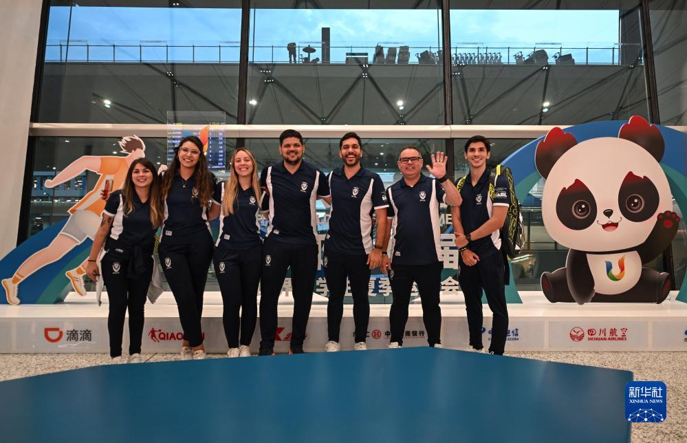 當日,七名巴西代表團成員抵達成都天府國際機場。這是第31屆世界大學生夏季運動會首批抵蓉的外國代表團成員。