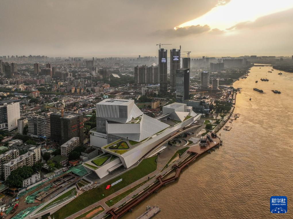 4月27日拍攝的白鵝潭大灣區(qū)藝術(shù)中心(無(wú)人機(jī)照片)。