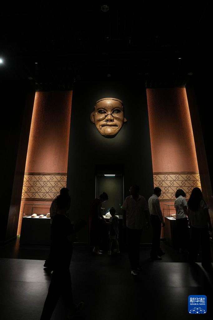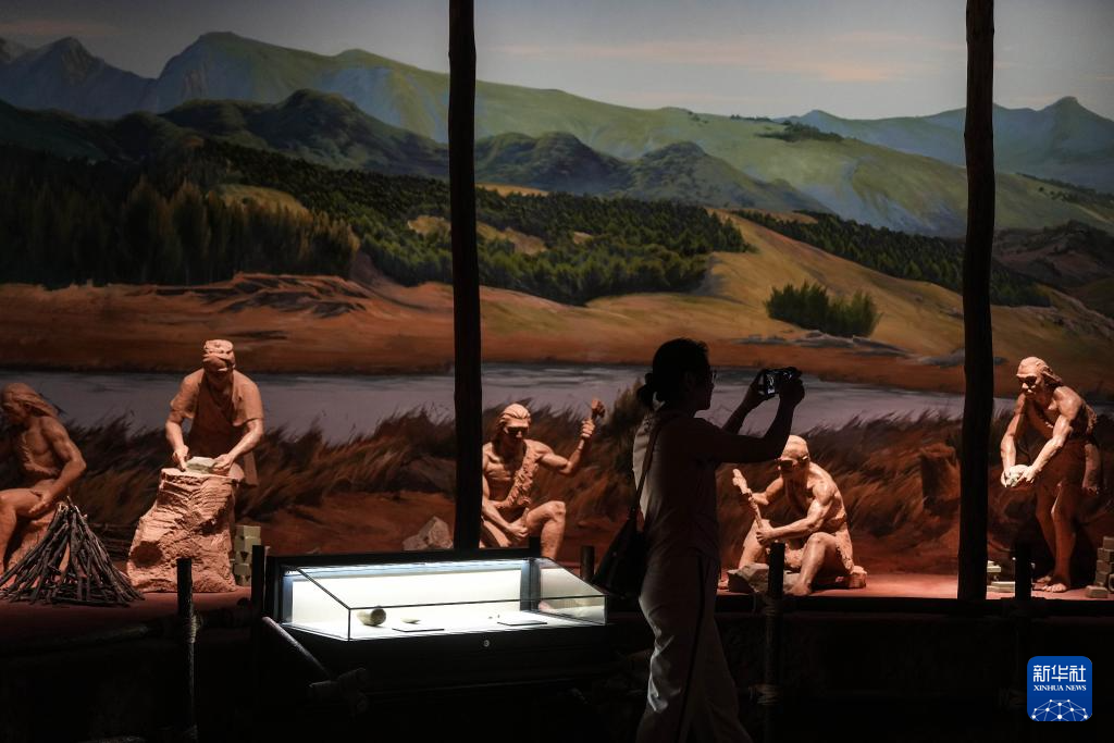 8月3日,參觀者在牛河梁遺址博物館內(nèi)觀展。