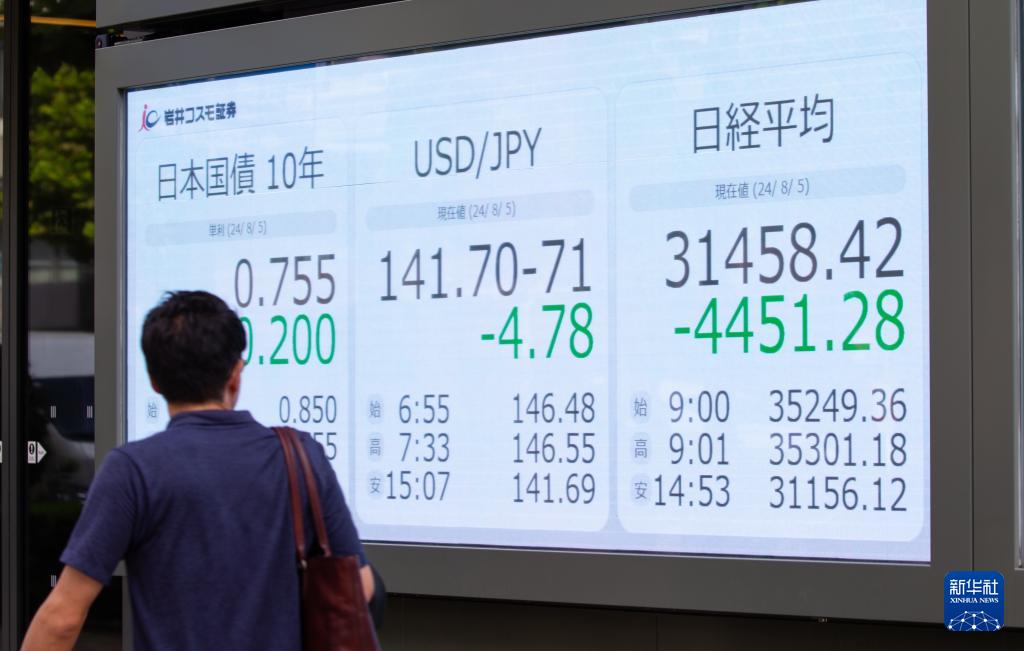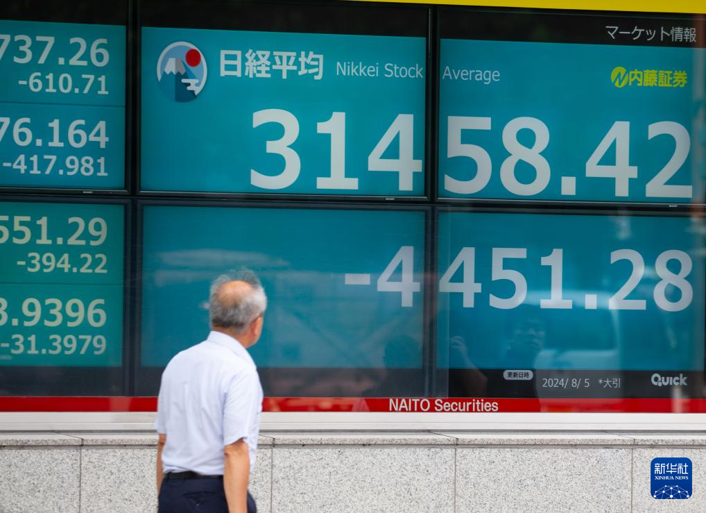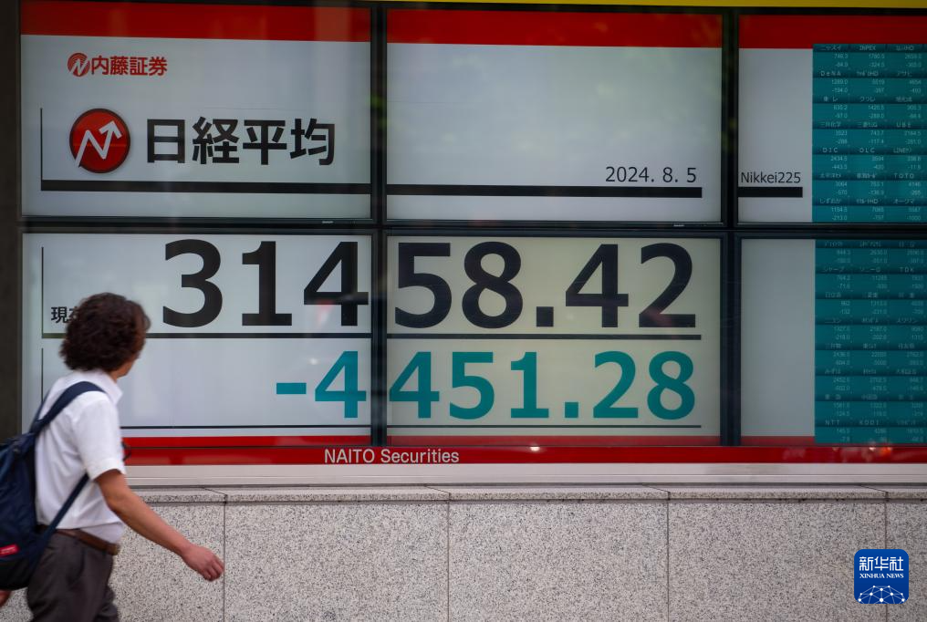 8月5日,行人走過位于日本東京的顯示實時股價的電子屏幕。