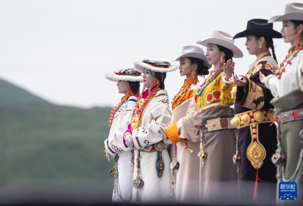 8月10日,在四川省色達(dá)縣,當(dāng)?shù)夭刈迦罕姶┲刈宸椷M(jìn)行展示。