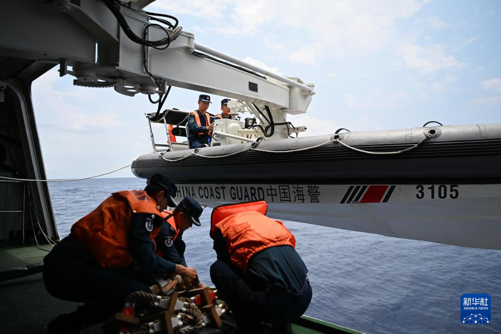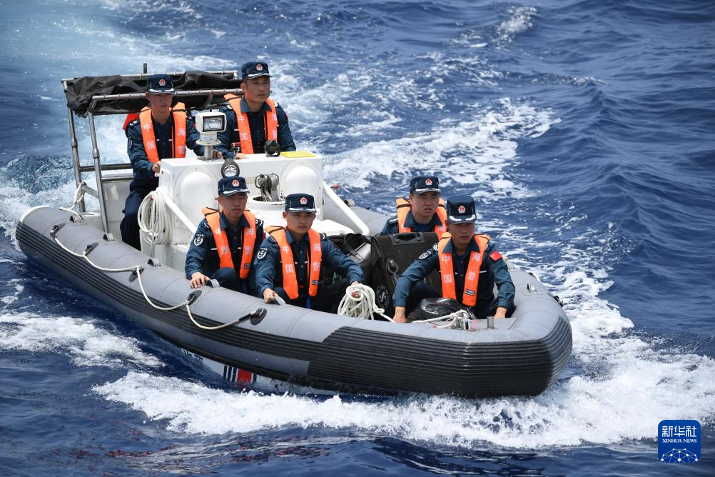 6月19日,中國海警鶴寶艦執(zhí)法員在黃巖島附近海域進(jìn)行小艇操縱訓(xùn)練。