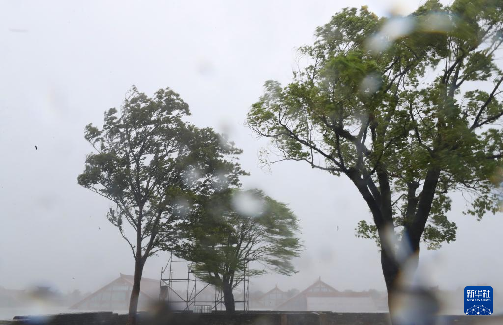 9月16日拍攝的強(qiáng)臺(tái)風(fēng)“貝碧嘉”到來時(shí)的上海松江廣富林遺址公園。