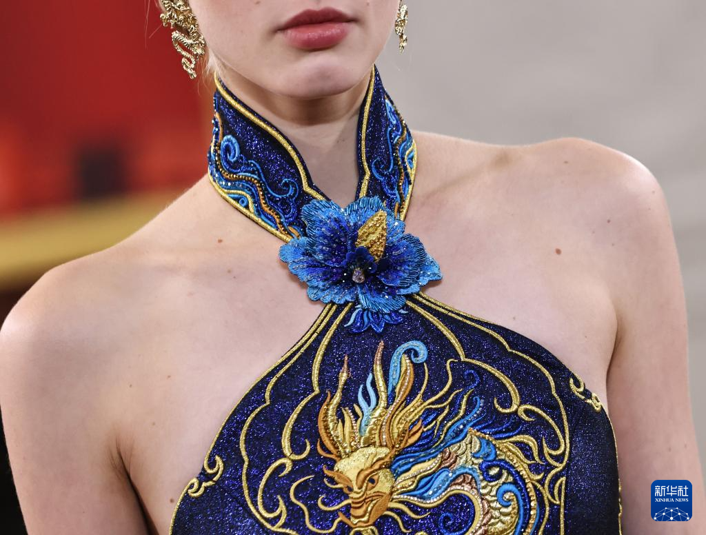 9月27日,在法國(guó)巴黎中國(guó)文化中心,模特在“高情遠(yuǎn)韻”——中國(guó)高級(jí)定制婚嫁禮服品牌六禮的發(fā)布會(huì)上展示服裝。