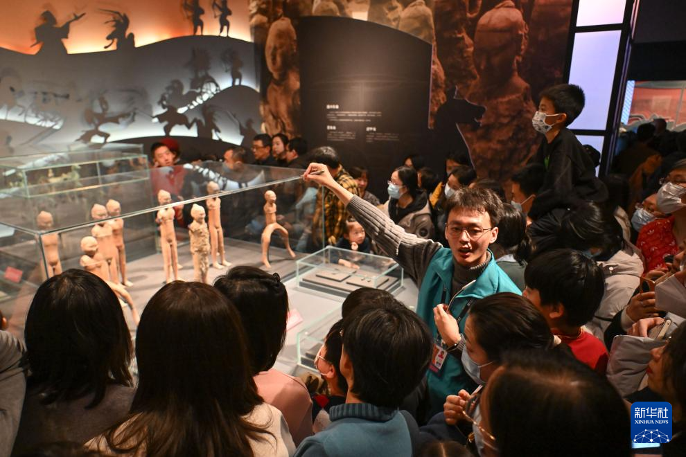 2025年1月1日,講解員在天津博物館“天開(kāi)一統(tǒng)——秦漢文物主題展”上為觀眾講解。