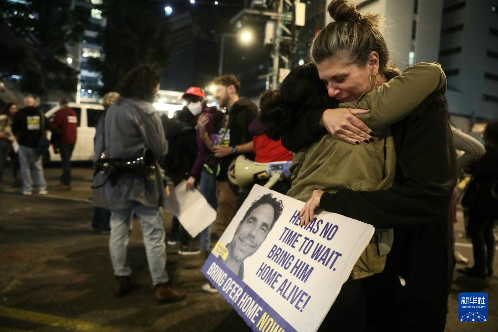 1月15日,在以色列特拉維夫街頭,人們擁抱慶祝協(xié)議達(dá)成。