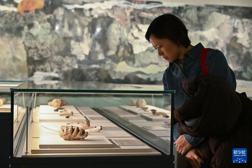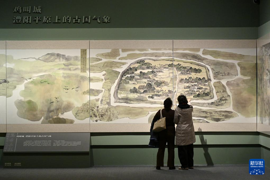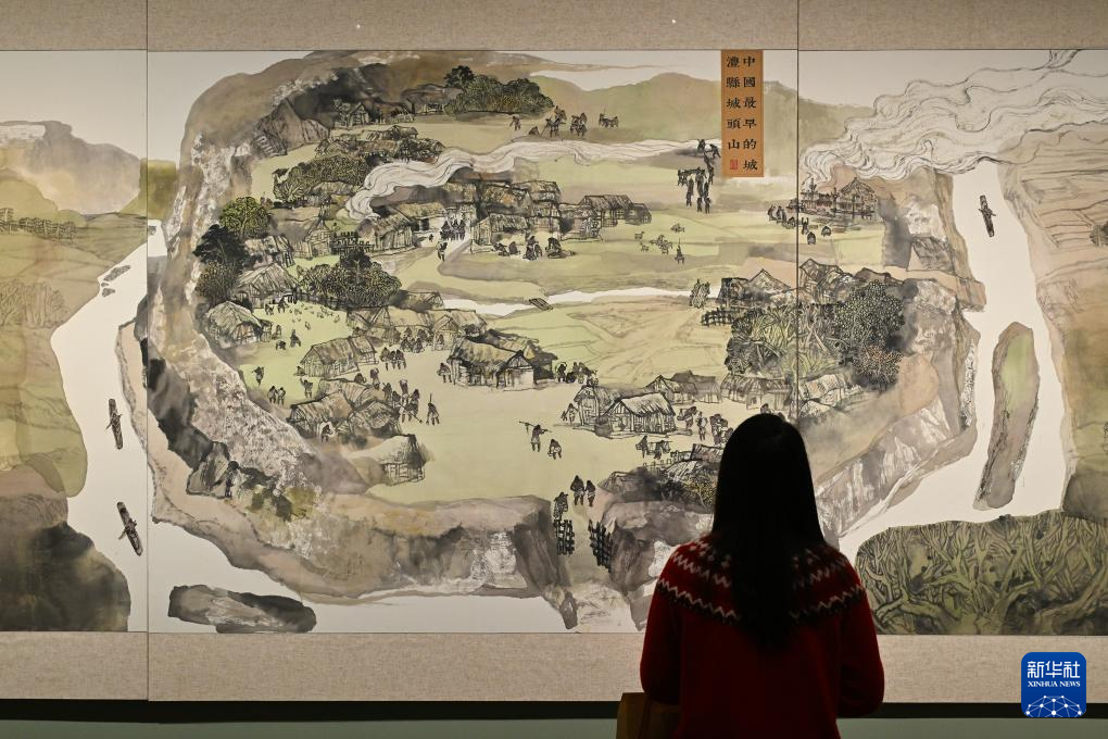 1月21日,參觀者在“萬(wàn)古長(zhǎng)歌——湖南史前文明圖卷展”上參觀。