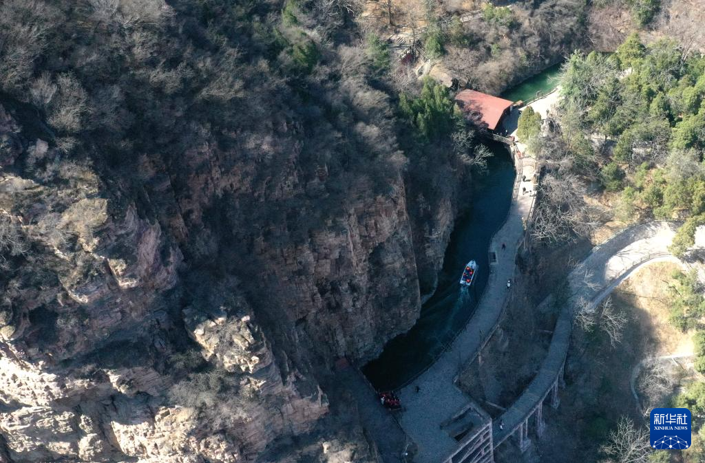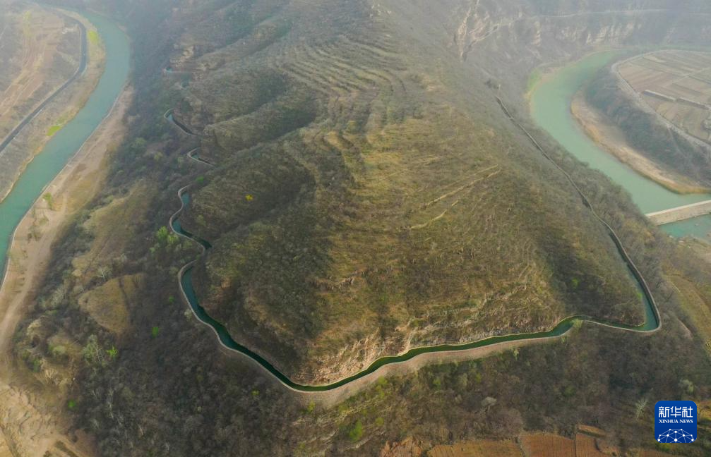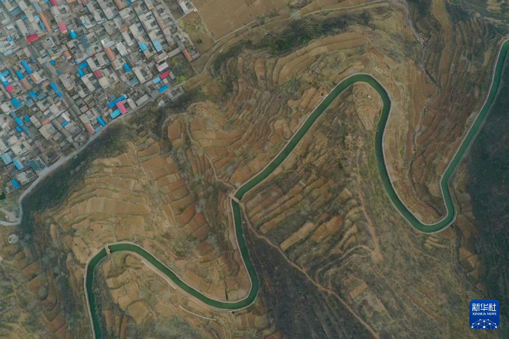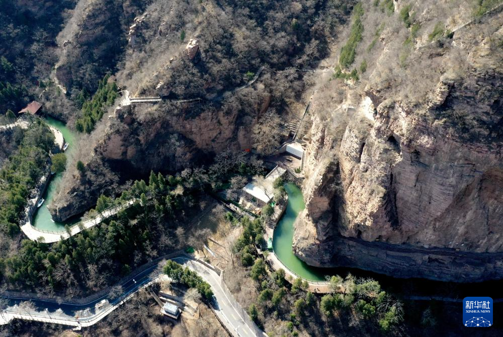 這是3月25日在河南省林州市任村鎮(zhèn)陽耳莊村附近拍攝的紅旗渠總干渠(無人機(jī)照片)。