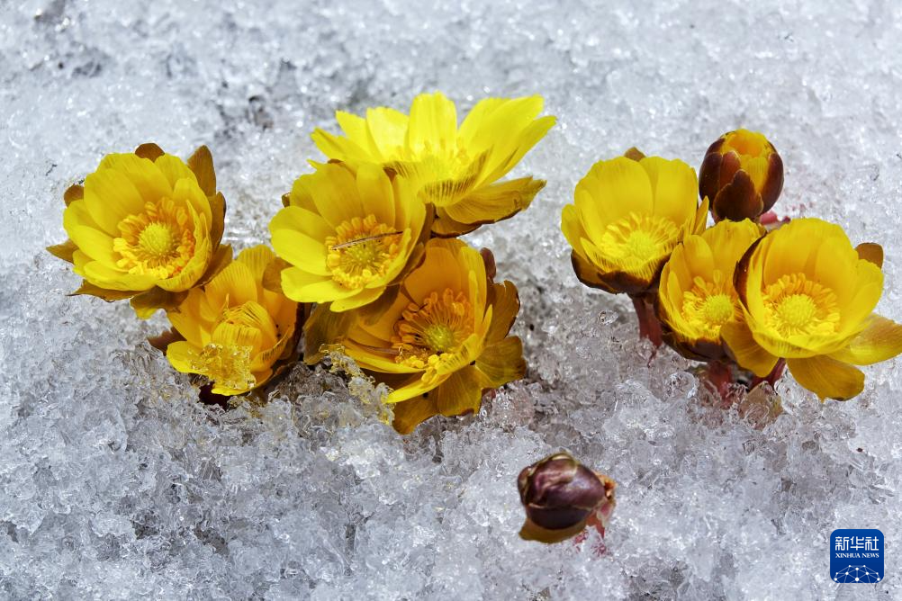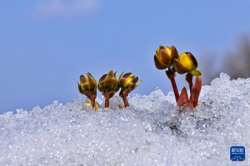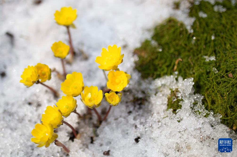 隨著氣溫升高,冰凌花破雪而出,迎春綻放。