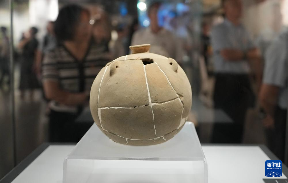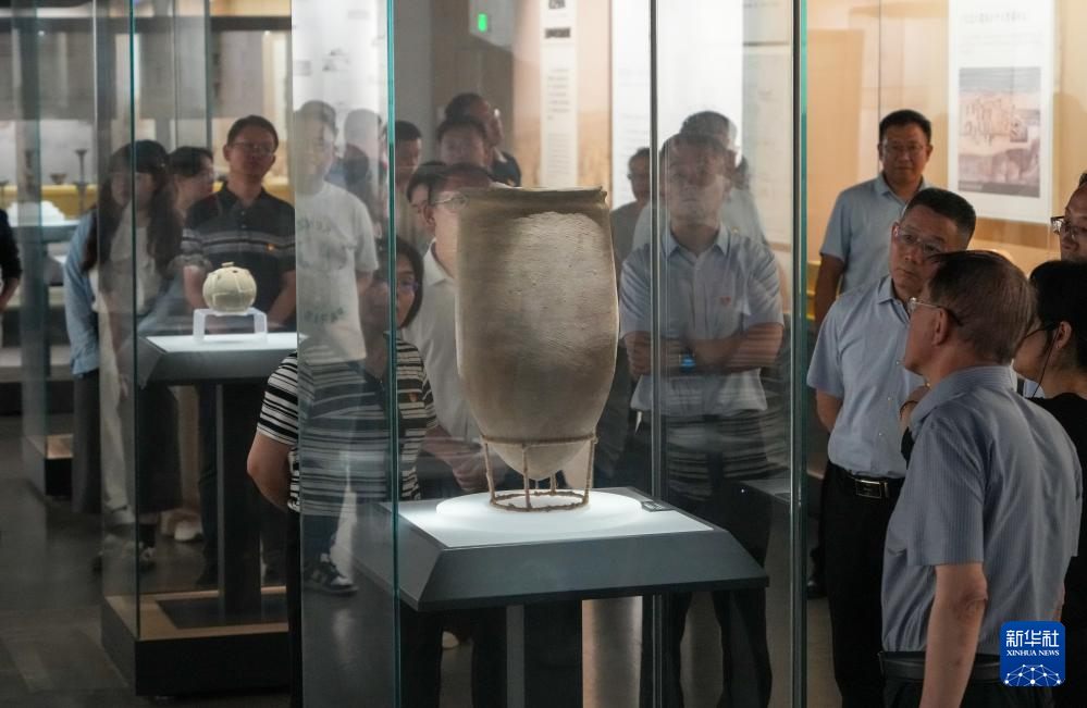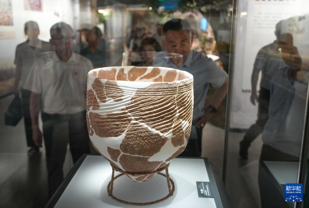 這是5月20日在大汶口遺址博物館拍攝的刻花陶罐。