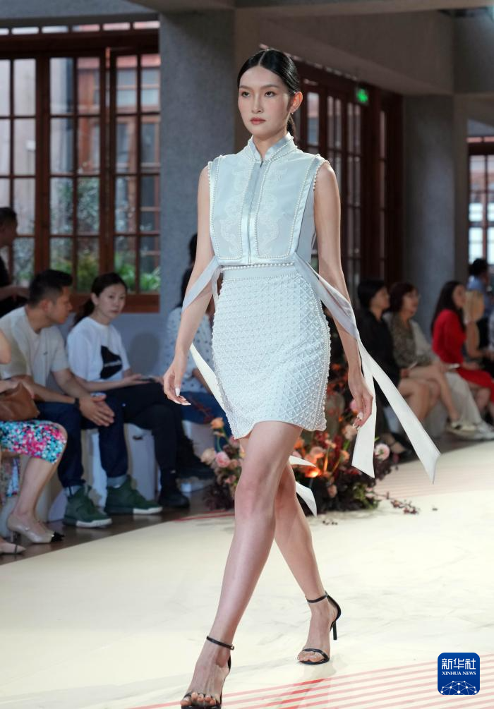 6月7日,模特在靜安時尚文化周的“中式時尚高定秀”上展示時裝。