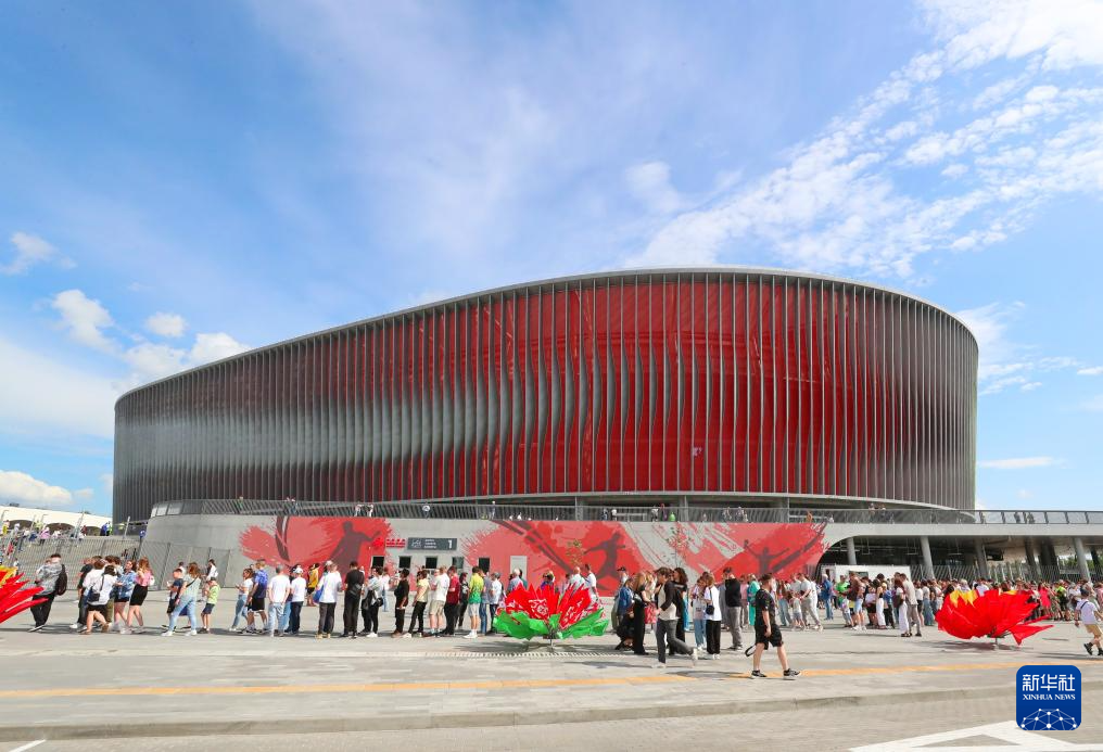 這是6月7日在白俄羅斯首都明斯克拍攝的中國援白俄羅斯國家足球體育場(chǎng)。