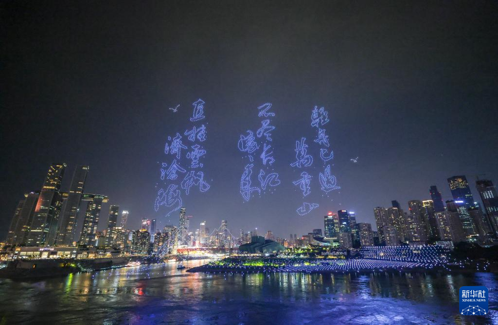 6月17日晚,重慶舉行超大規(guī)模無(wú)人機(jī)燈光秀表演,由11787架無(wú)人機(jī)組成的雙編隊(duì)飛行從重慶市南岸區(qū)彈子石廣場(chǎng)起飛,創(chuàng)造了“最多無(wú)人機(jī)組成的空中圖案”吉尼斯世界紀(jì)錄。