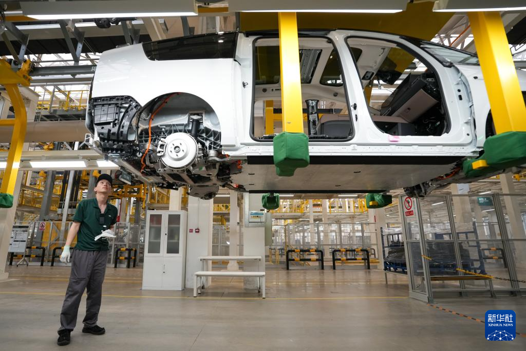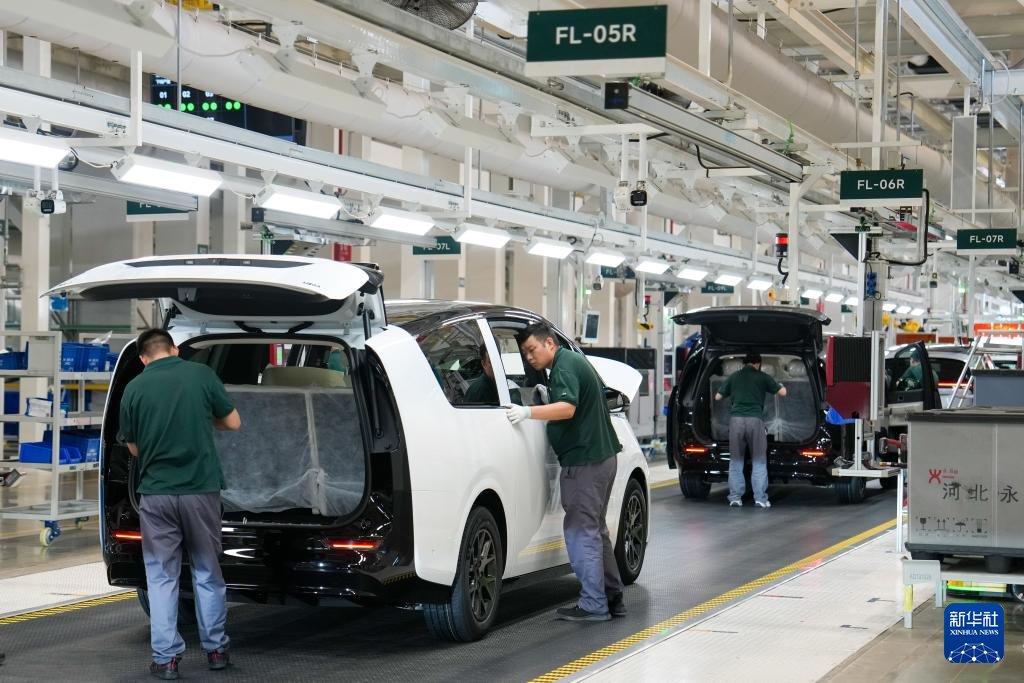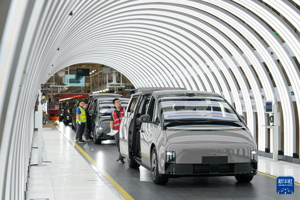 6月18日,工作人員在理想汽車北京智能制造基地總裝車間內(nèi)工作。