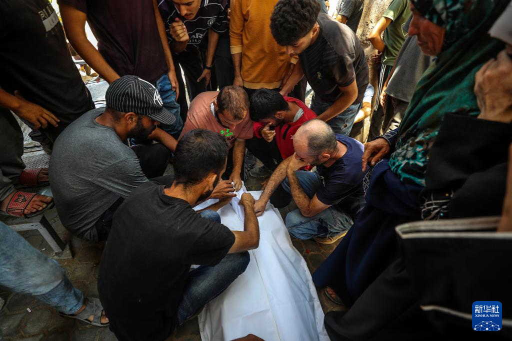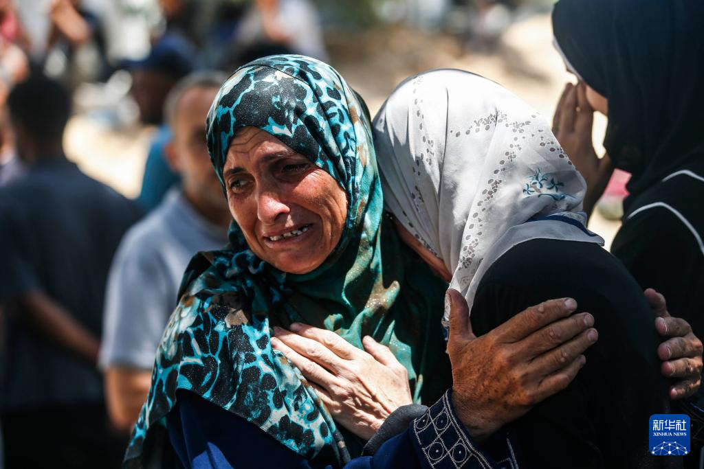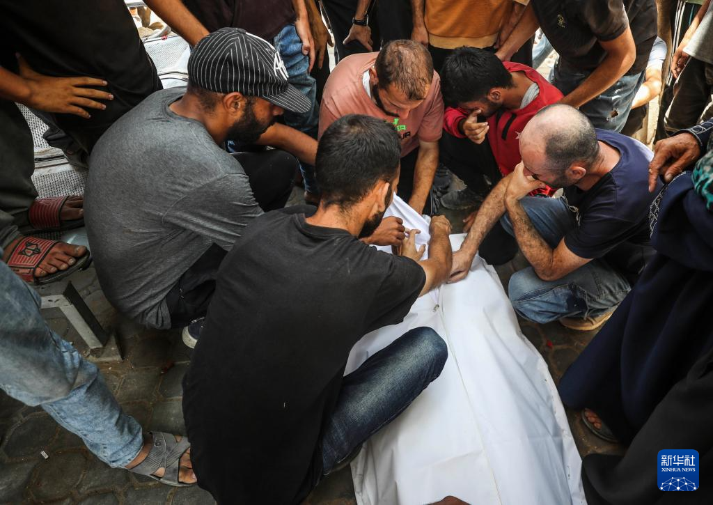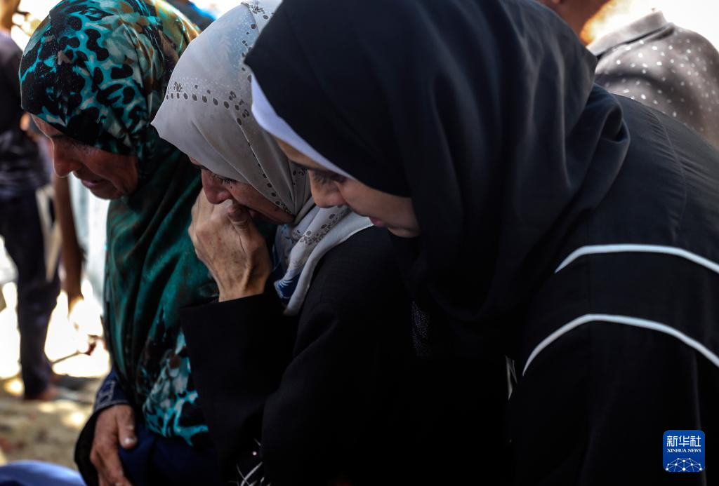 6月25日,巴勒斯坦人在加沙城一所醫(yī)院悼念以軍襲擊中的遇難者。