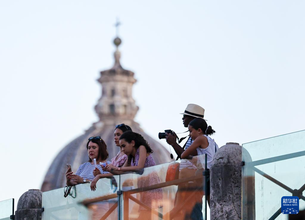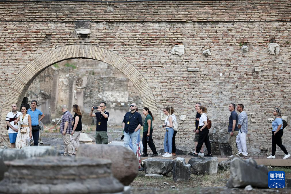 7月5日傍晚,在意大利羅馬,游客在古羅馬廣場參觀。