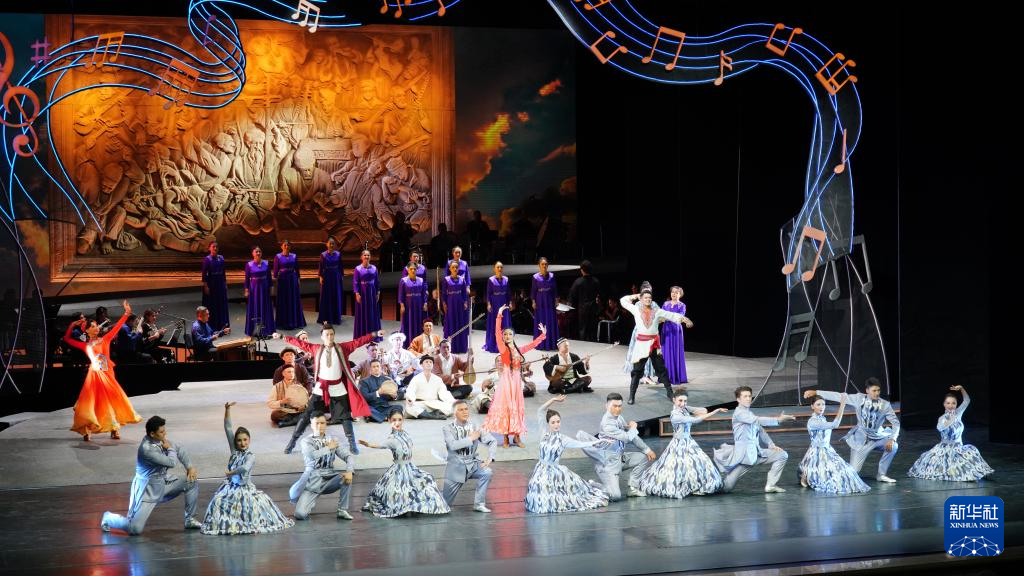 新疆木卡姆藝術(shù)集歌、舞、樂于一體,演員舞姿或剛勁有力,或熱鬧歡愉,帶領(lǐng)觀眾進(jìn)入歡樂海洋。