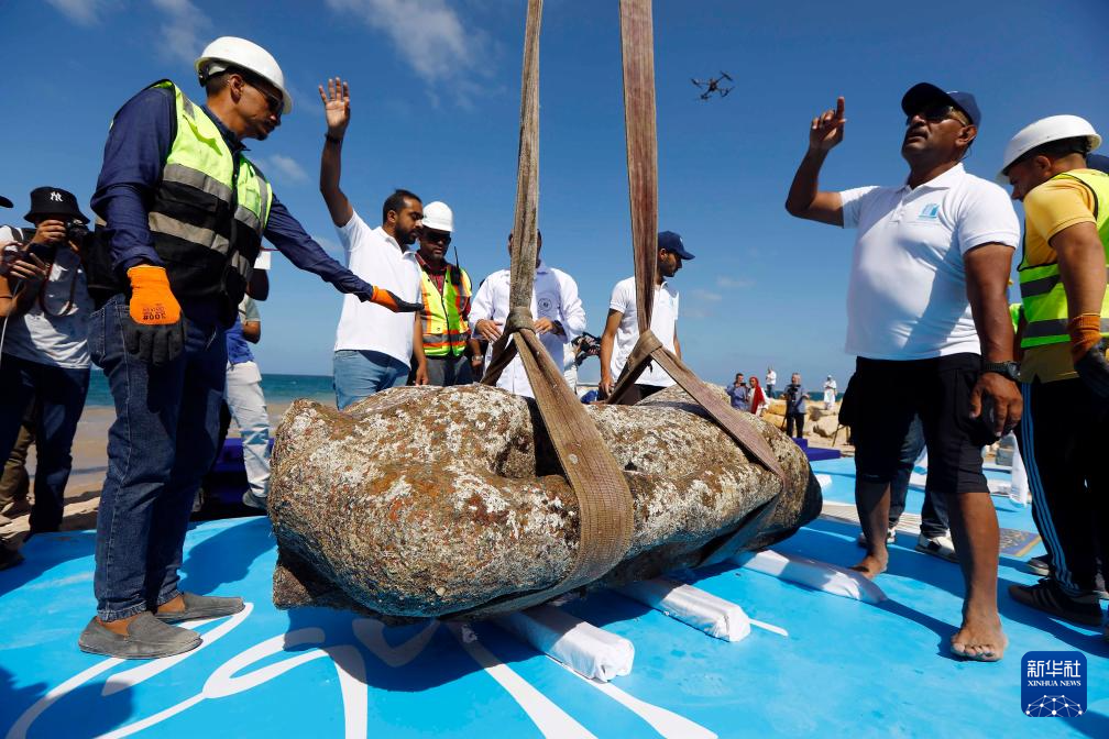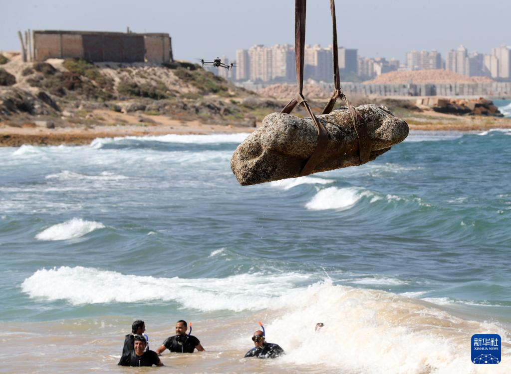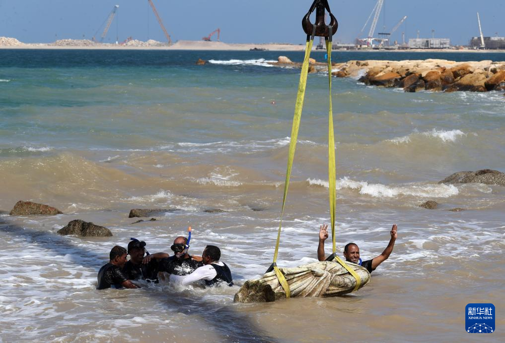 當日,埃及旅游和文物部在亞歷山大附近的阿布基爾灣地中海水域打撈出三件大型石刻雕像,包括一尊殘缺的獅身人面像、一尊斷頸斷膝的托勒密時代晚期人物雕像,以及一尊白色的羅馬貴族大理石雕像。
