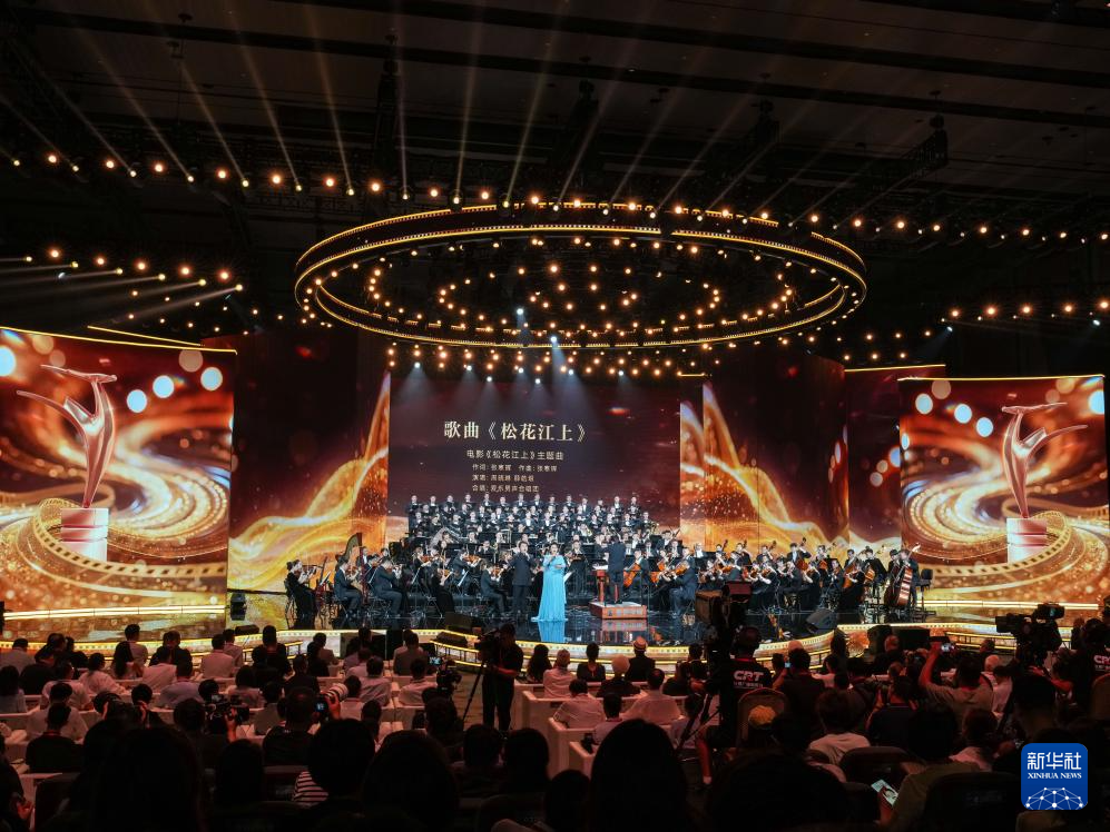 8月23日在吉林長春拍攝的第二十屆中國長春電影節(jié)開幕式暨長影成立80周年交響音樂會現(xiàn)場。