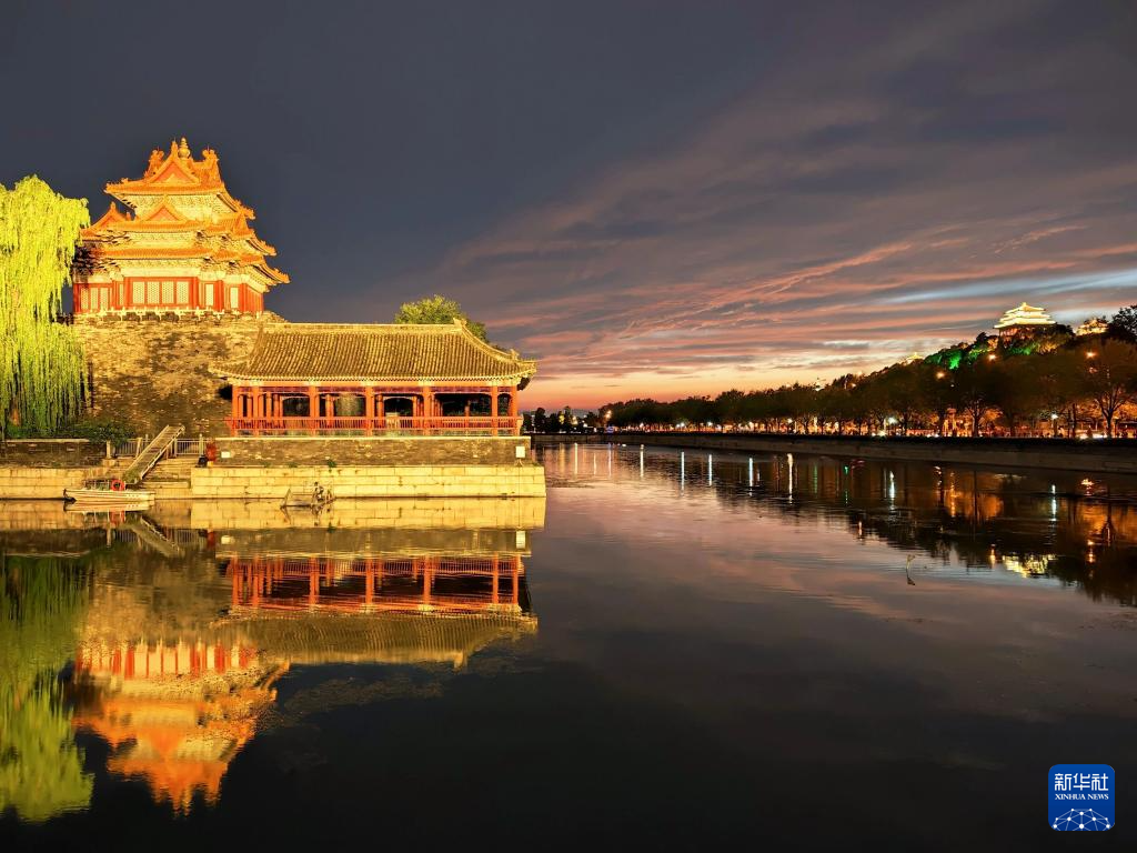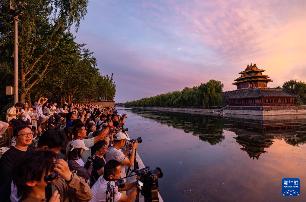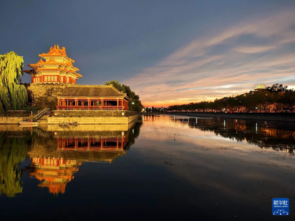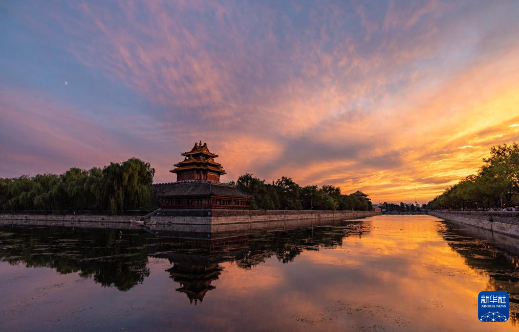 8月30日在北京故宮角樓畔拍攝的晚霞。