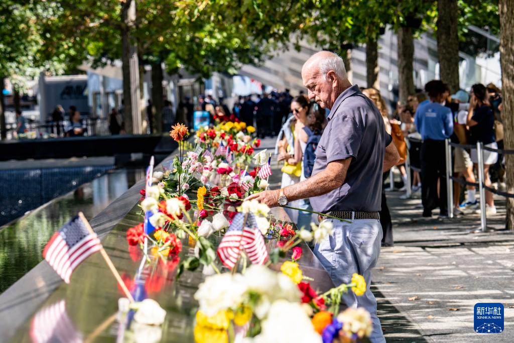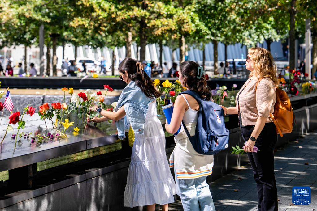 9月11日,民眾在美國紐約“9·11”紀(jì)念廣場(chǎng)悼念“9·11”恐怖襲擊事件的遇難者。