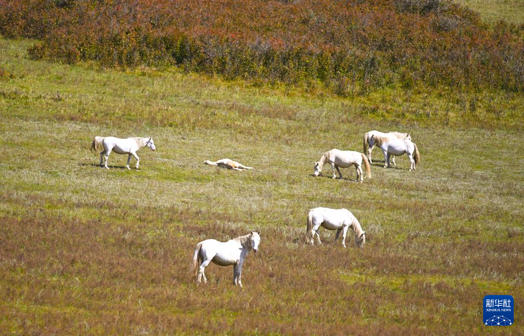 9月12日,馬匹在烏蘭布統(tǒng)草原上覓食。