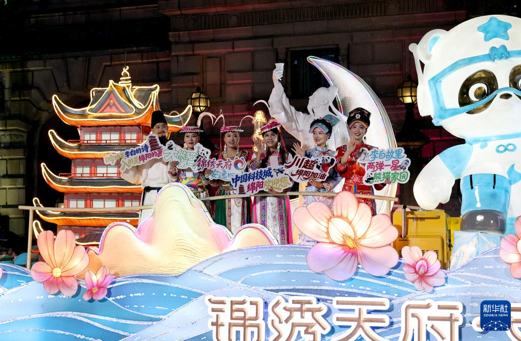 9月13日在上海旅游節(jié)花車巡游活動上拍攝的四川省阿壩藏族羌族自治州主題花車。