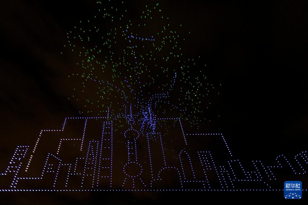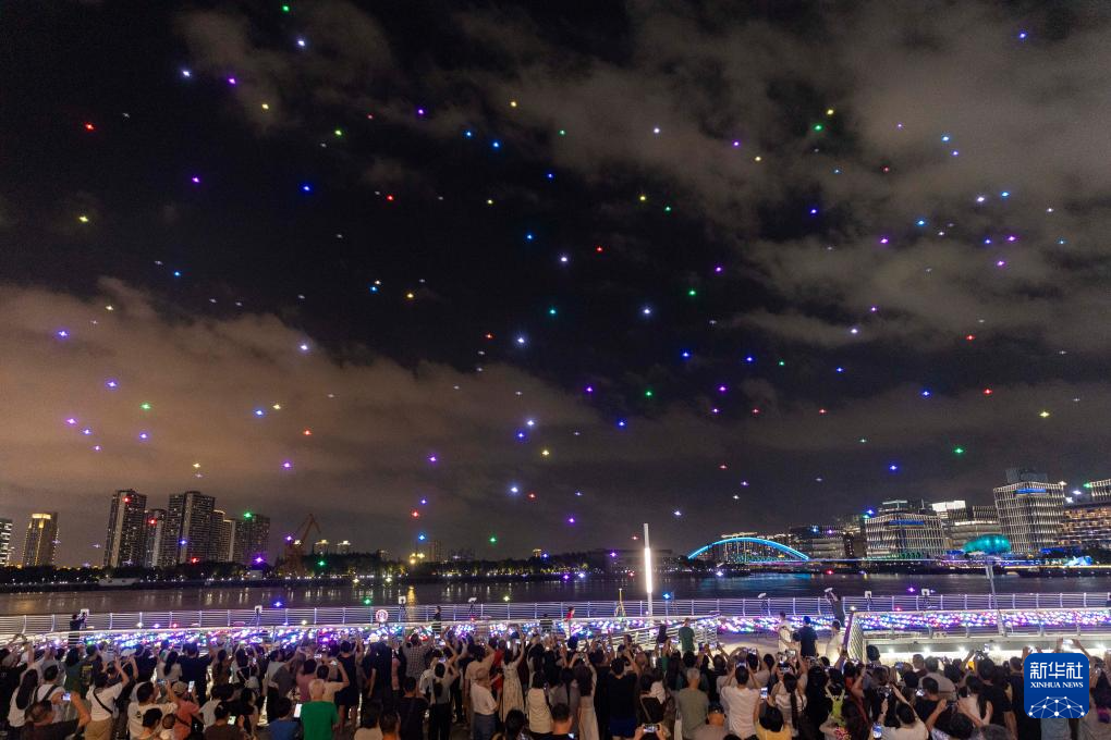 9月19日,人們在徐匯濱江主會場欣賞無人機(jī)燈光秀。