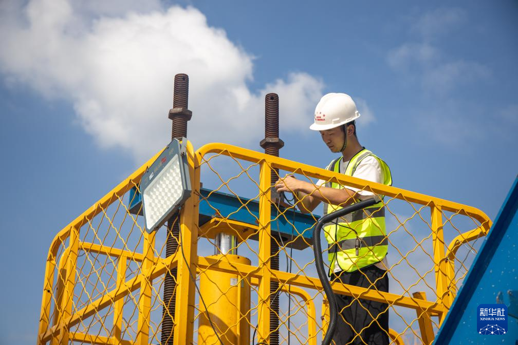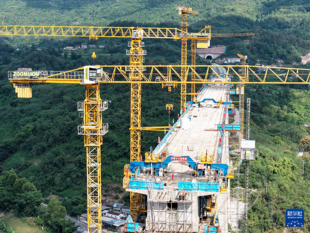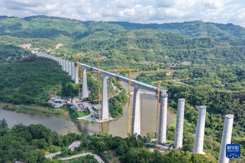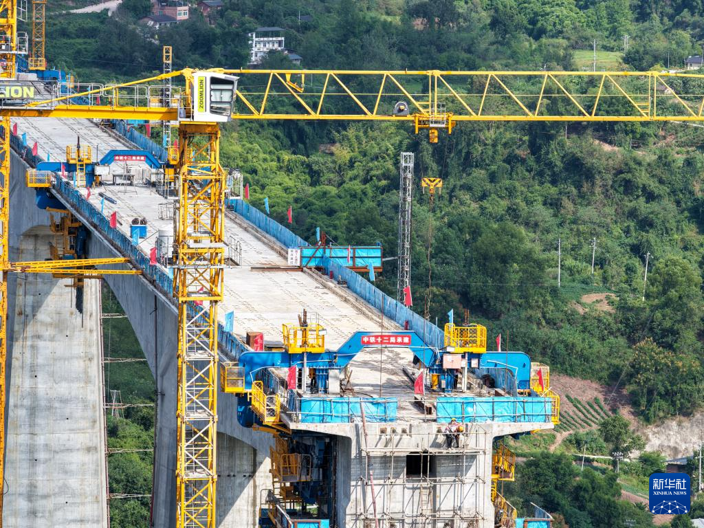 這是9月24日拍攝的渝萬高鐵五步河雙線特大橋建設(shè)現(xiàn)場(無人機照片)。