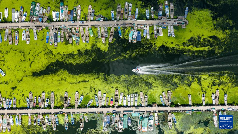 9月26日,捕蟹船只回到陽澄湖碼頭(無人機照片)。