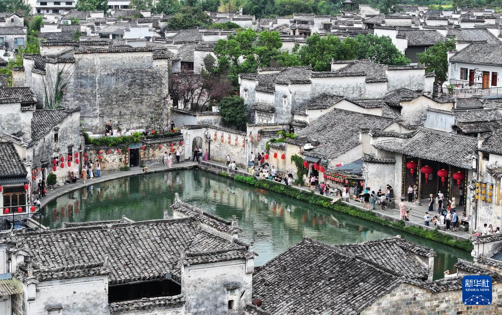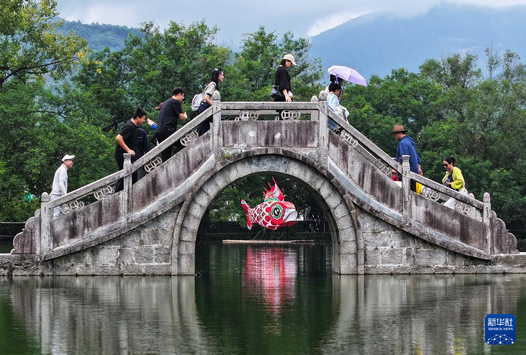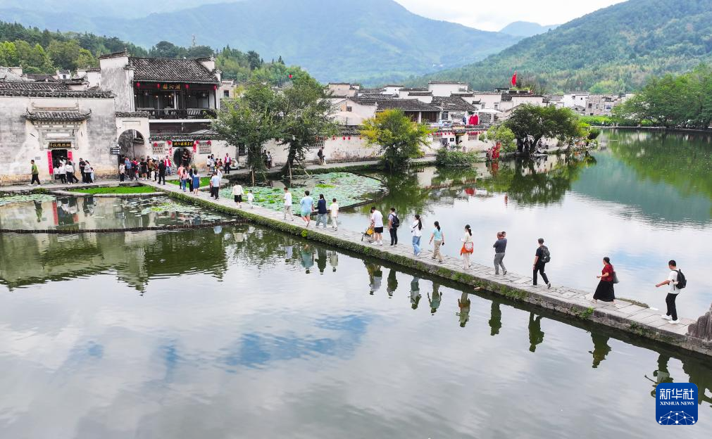 當(dāng)日是國(guó)慶假期首日,世界文化遺產(chǎn)地安徽黃山西遞宏村迎來(lái)大批游客,古樸典雅的徽派建筑和水鄉(xiāng)美景讓游人流連忘返。