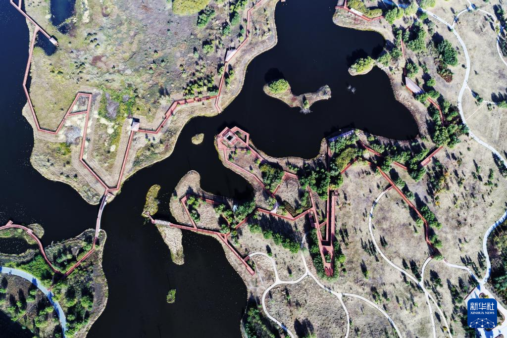 這是10月7日拍攝的哈爾濱金河灣濕地公園景色(無人機(jī)照片)。