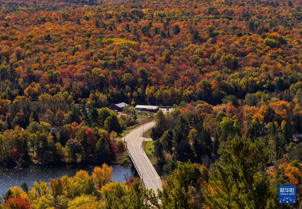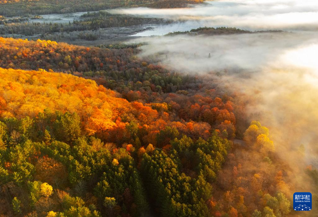 這是10月9日在加拿大安大略省亨茨維爾一處公園拍攝的秋色。