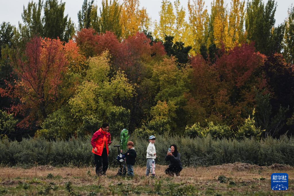 10月12日,游人在長春植物園內(nèi)觀賞秋景。