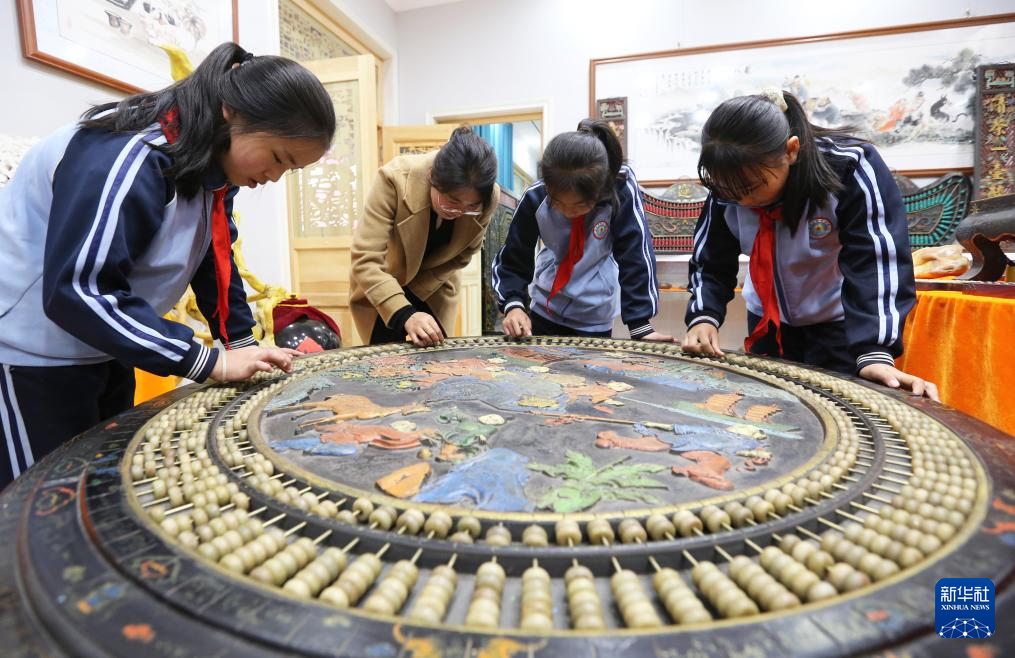 10月14日,隴西縣紅星小學(xué)學(xué)生在程萬(wàn)里的算盤非遺體驗(yàn)基地參觀。