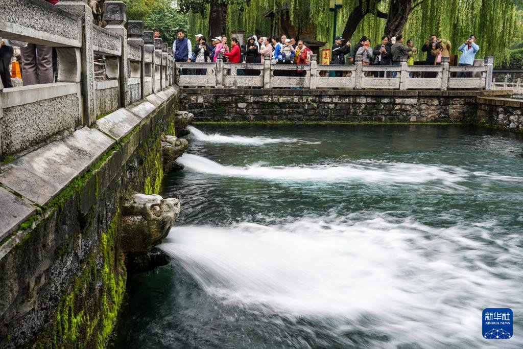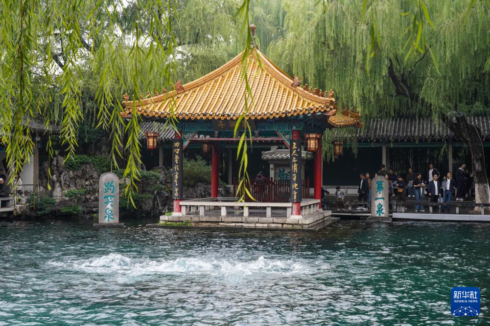 受近期降雨影響,山東省濟(jì)南市群泉奔涌,吸引游客前來觀賞。